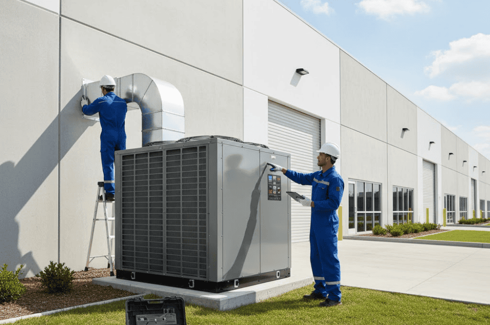 Design and connection of the supply and return air ductwork to the unit, ensuring balanced, high-volume air delivery throughout the designated service area.